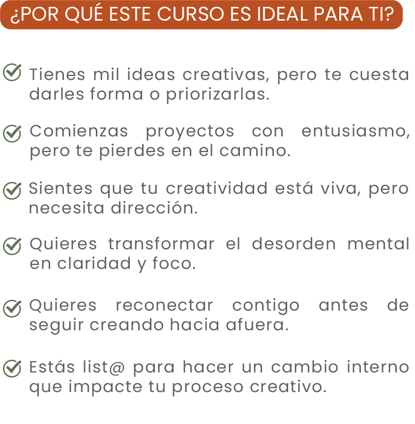 Este curso de 5 días es tu punto de partida para hacer un cambio real. “THE SWITCH” no es solo un taller creativo, es un switch mental: vas a reconectar contigo, transformar tu caos en motor y aprender a crear desde un lugar más claro, más auténtico y más alineado con tu visión.